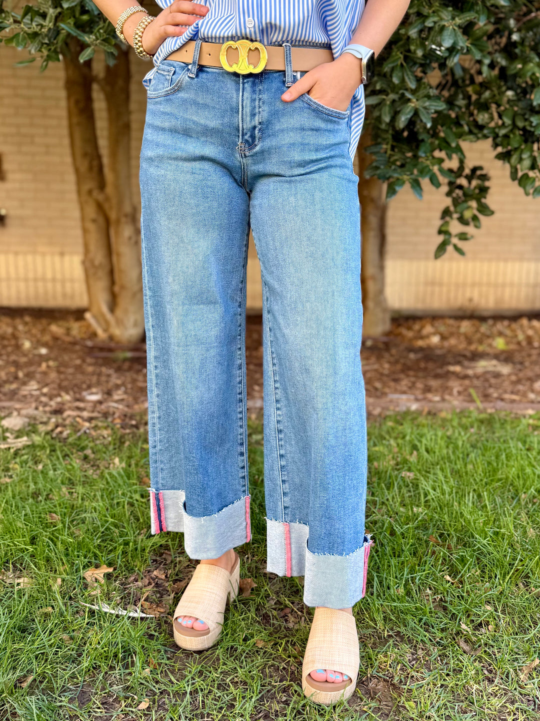 Melissa High Rise Tummy Control Ankle Straight Cuff Jean by Risen