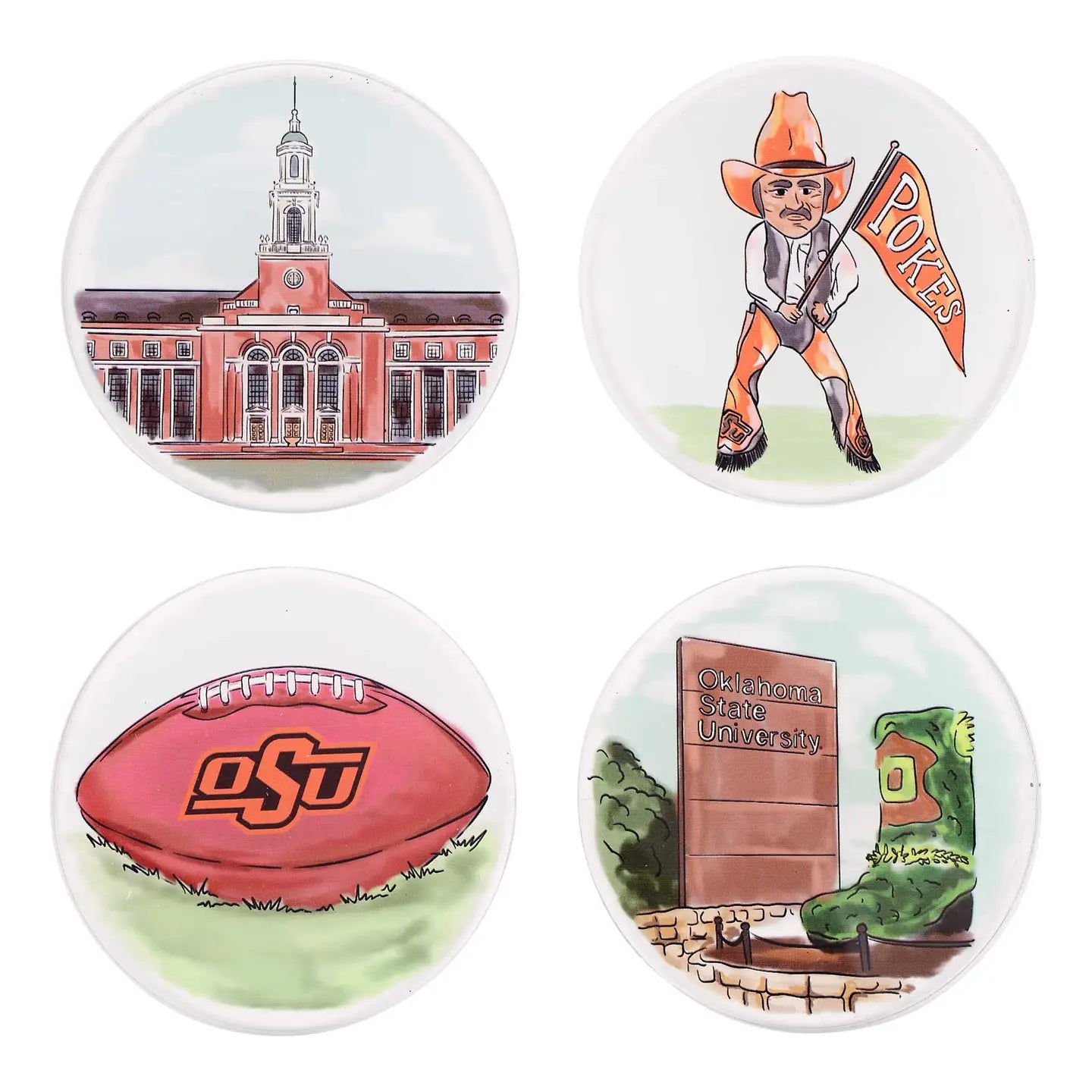 Show off your Cowboy pride while keeping your surfaces safe with this set of 4 Oklahoma State Coasters! Featuring bold orange and black designs with iconic OSU branding, these durable coasters are perfect for game days, offices, dorm rooms, or everyday use. Whether you’re enjoying hot coffee or a cold drink, they add a spirited touch to any space. A must-have for Oklahoma State students, alumni, or fans who want to bring school spirit to every sip!