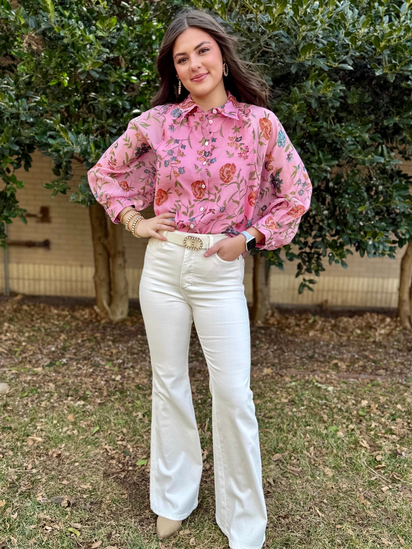 The Sweetheart Pink Garden Blouse is your new office favorite! Featuring a charming collar, dreamy 3/4 balloon sleeves, and a soft pink floral print, it’s the perfect blend of polished and playful. Tuck it into white denim or a skirt for a perfectly sweet Easter look.