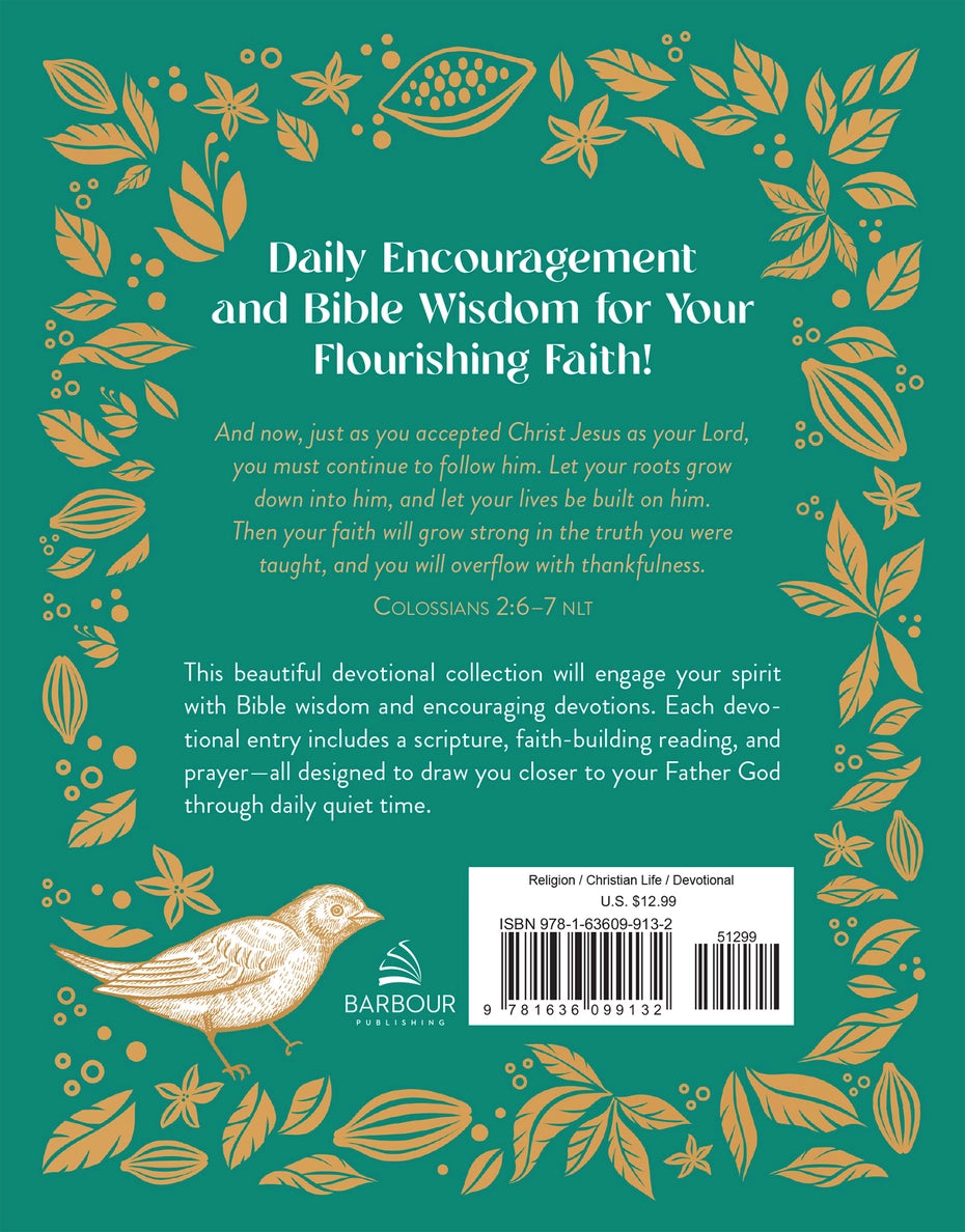 This beautiful devotional collection will engage your spirit with Bible wisdom and encouraging devotions. Each day's reading includes a scripture, faith-building reading, and prayer—all designed to draw you closer to your Father God through daily quiet time. This women's devotional is perfect for personal use or makes a thoughtful gift that will be cherished for years to come.