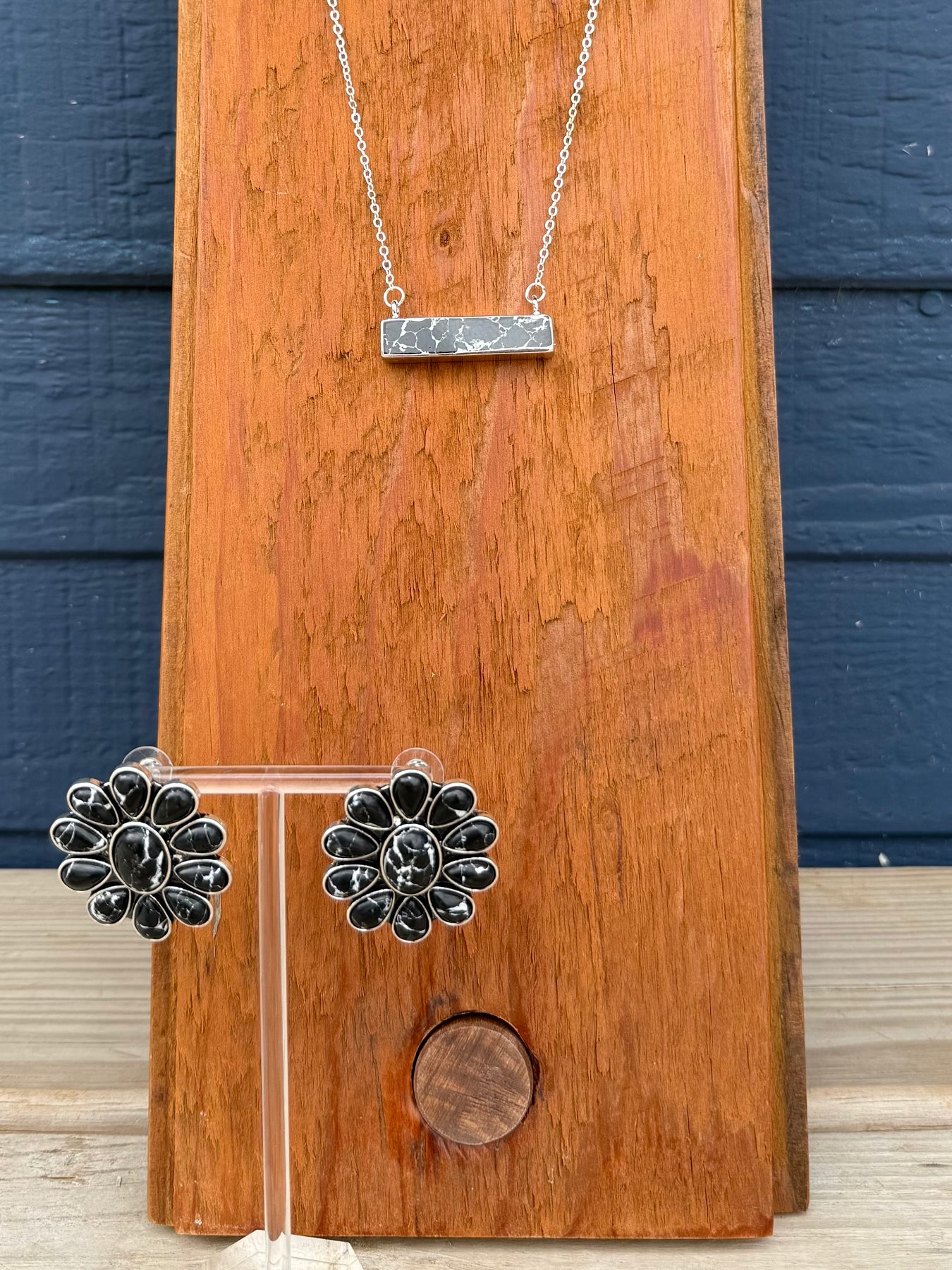 Add a touch of Western flair with our Montana Black Bar Necklace! This unique piece features a delicate design and a bold black bar accent. Perfect for adding a subtle touch of Western to any outfit! It looks great layered with longer pieces. Add the Montana Black Cluster Earrings to complete the look.