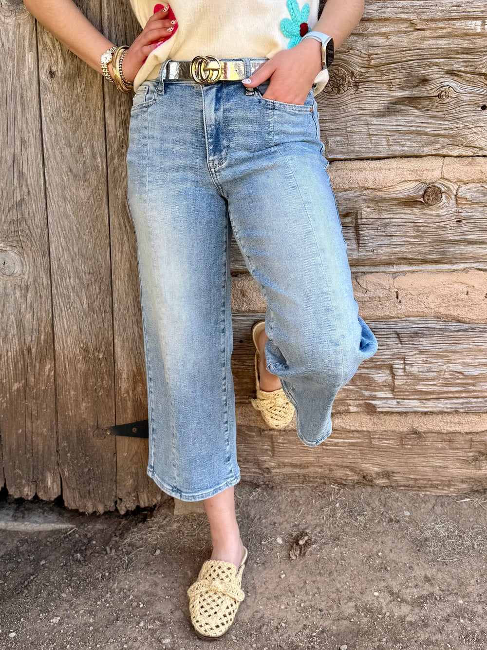 Sierra High Rise Button Fly Wide Leg Crop Jean by Risen
