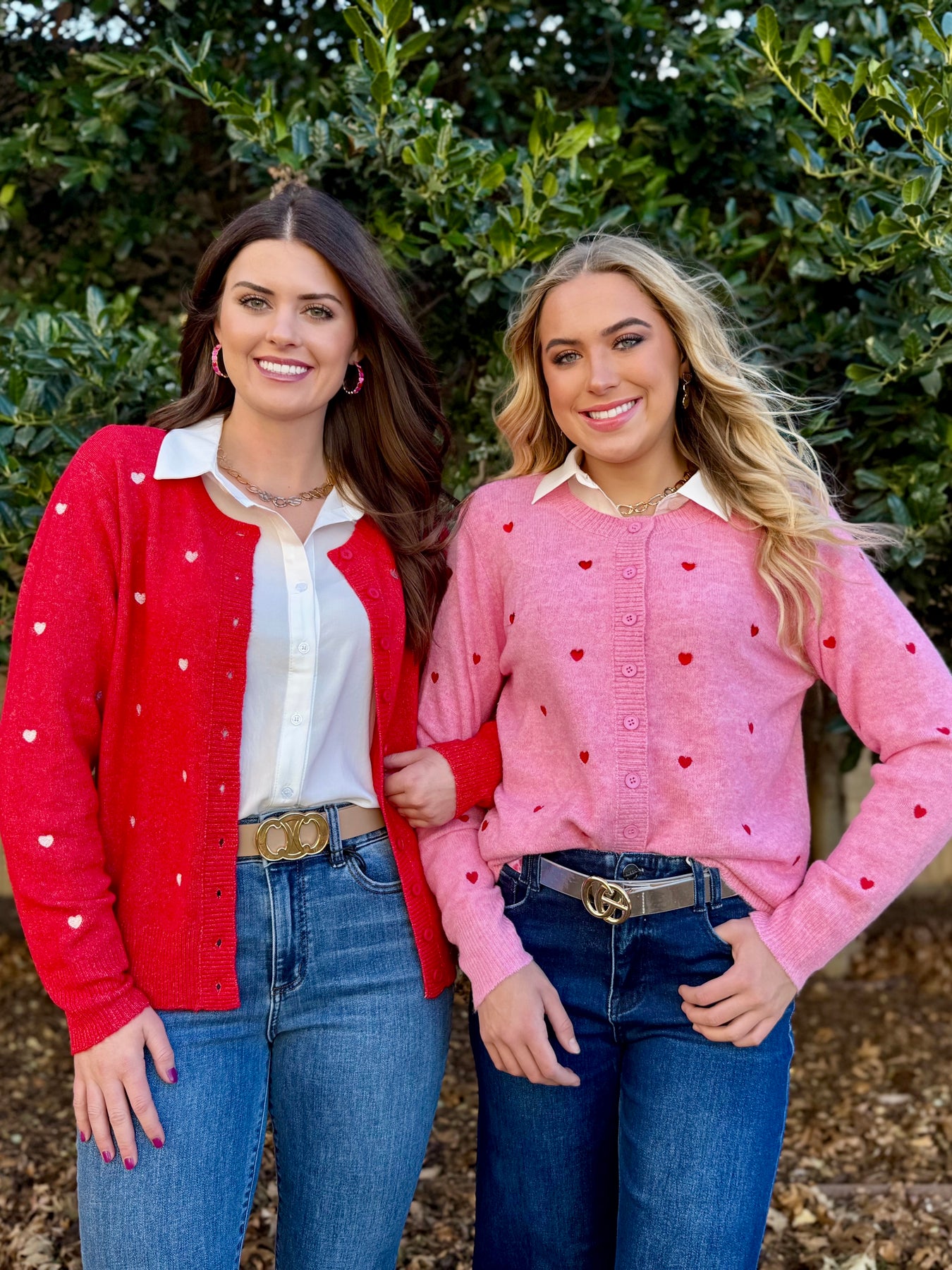 Wearing your heart on your sleeve isn’t a bad thing when you wear these adorable sweaters! Perfect for Valentine’s Day and beyond, these precious cardigans with embroidered hearts are so sweet. Easy to layer or wear alone, style it simply with your favorite jeans. The hardest part will be choosing which color!