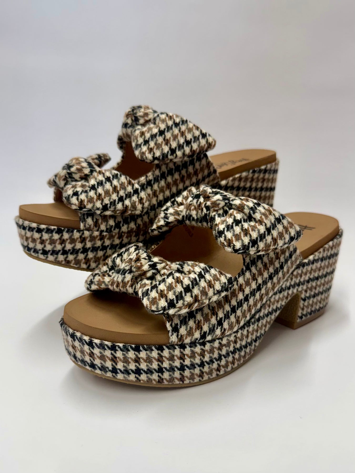 Put A Bow On It and wrap your outfit in style with these fabulous houndstooth platforms. These heels are the perfect choice for brunch with the girls or a fall wedding or dressier event. With their signature Corky's comfort, you will be able to wear them all day long!