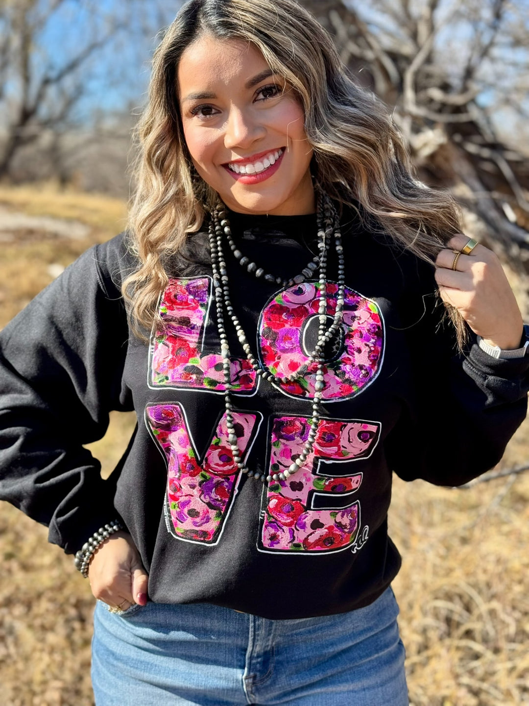 Callie Ann Stelter Stacked Floral Love Sweatshirt