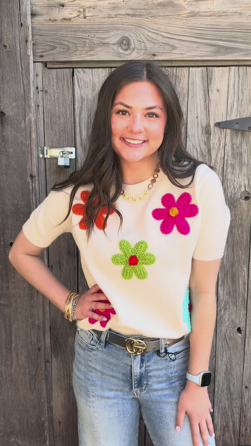This Garden Stitch Ivory Sweater is the perfect addition to your Spring and Summer wardrobe. The chunky embroidered flowers and vibrant colors add a touch of whimsy to any outfit. Stay bold and bright all season long with this must-have piece!