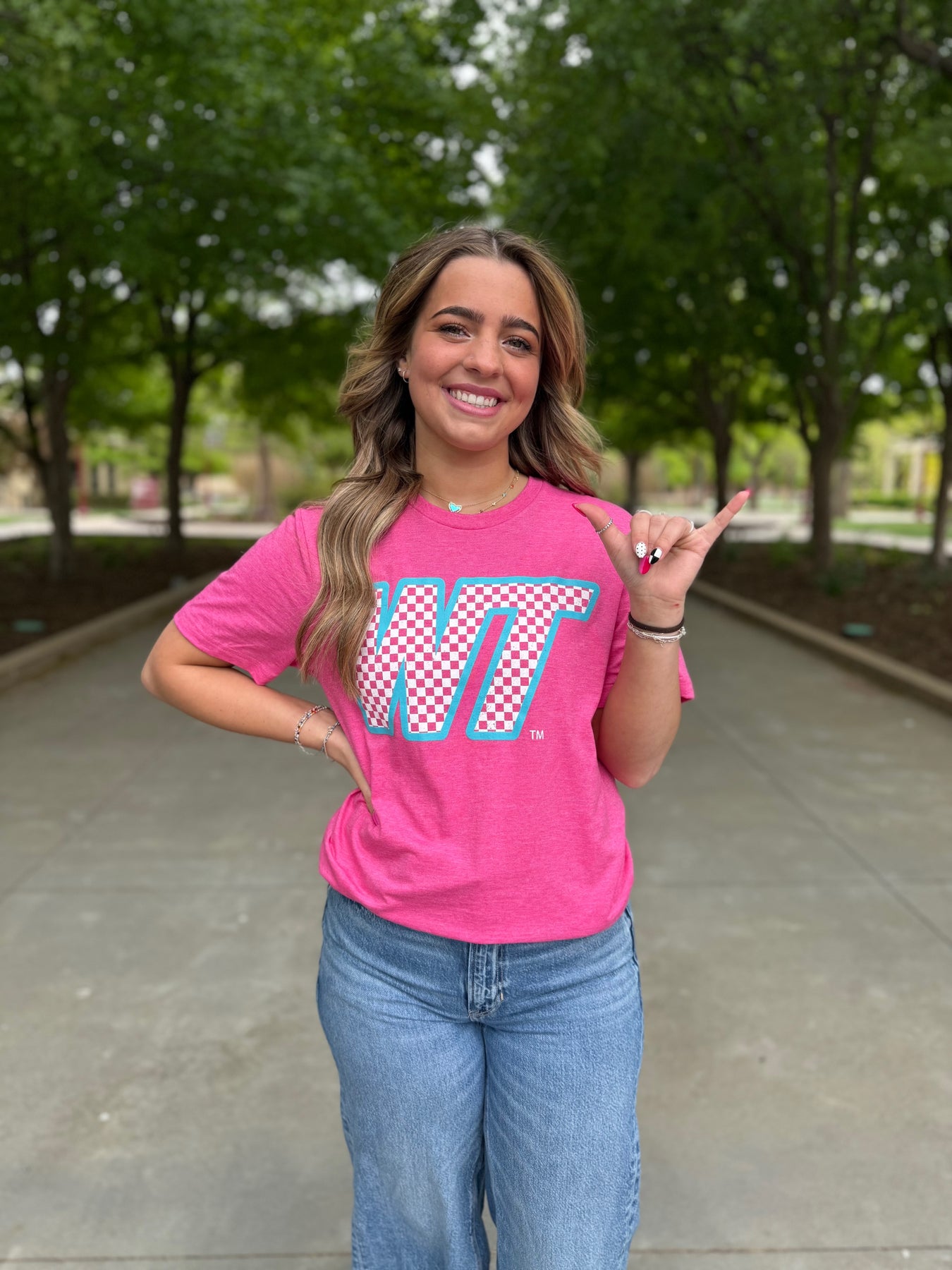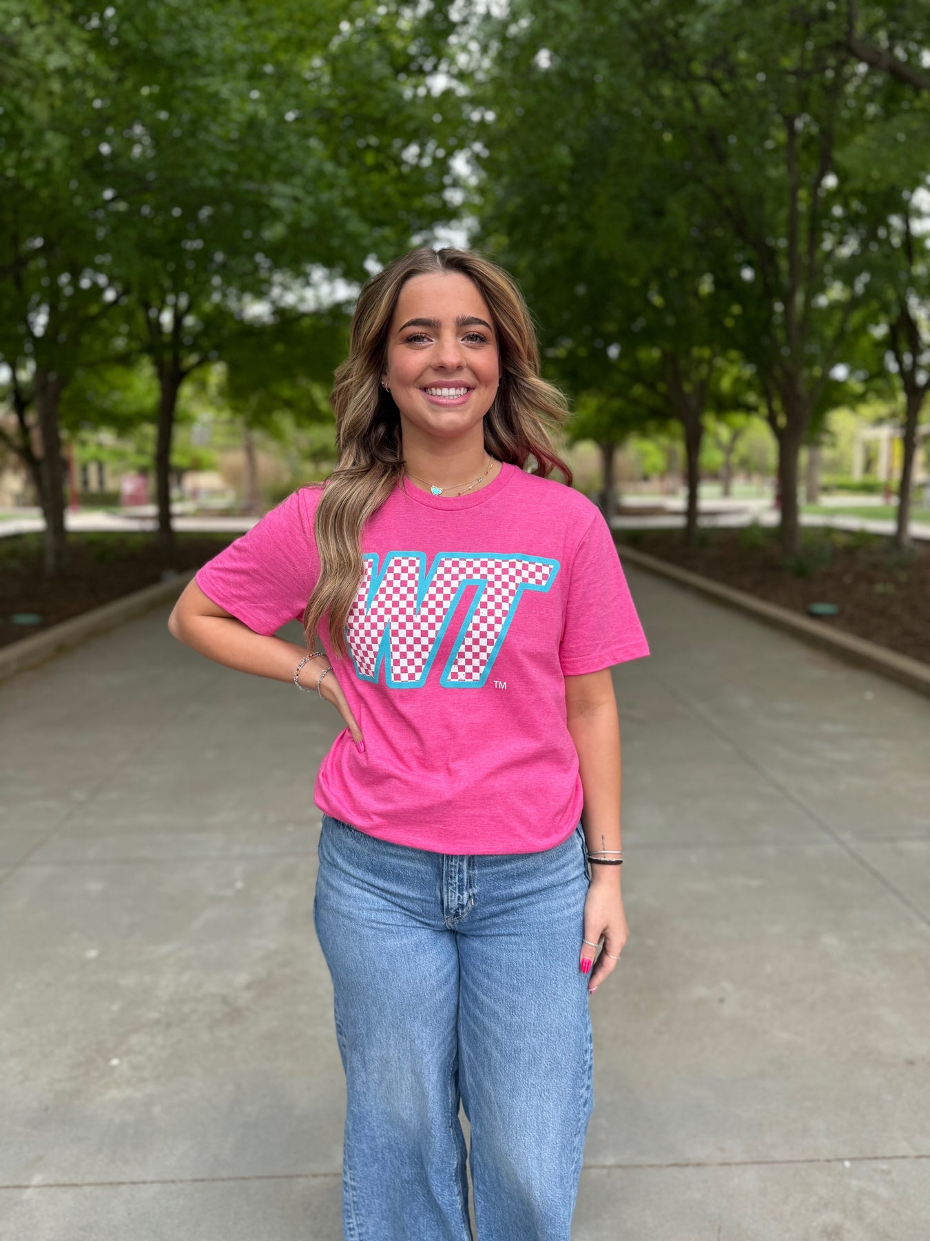 Get ready to make a statement this summer with our Checkered Slant WT Tee! The adorable checkered design will add a touch of fun to any outfit, and it's a must-have for your summer wardrobe. So go ahead, rock this tee with confidence and slay all summer long!
