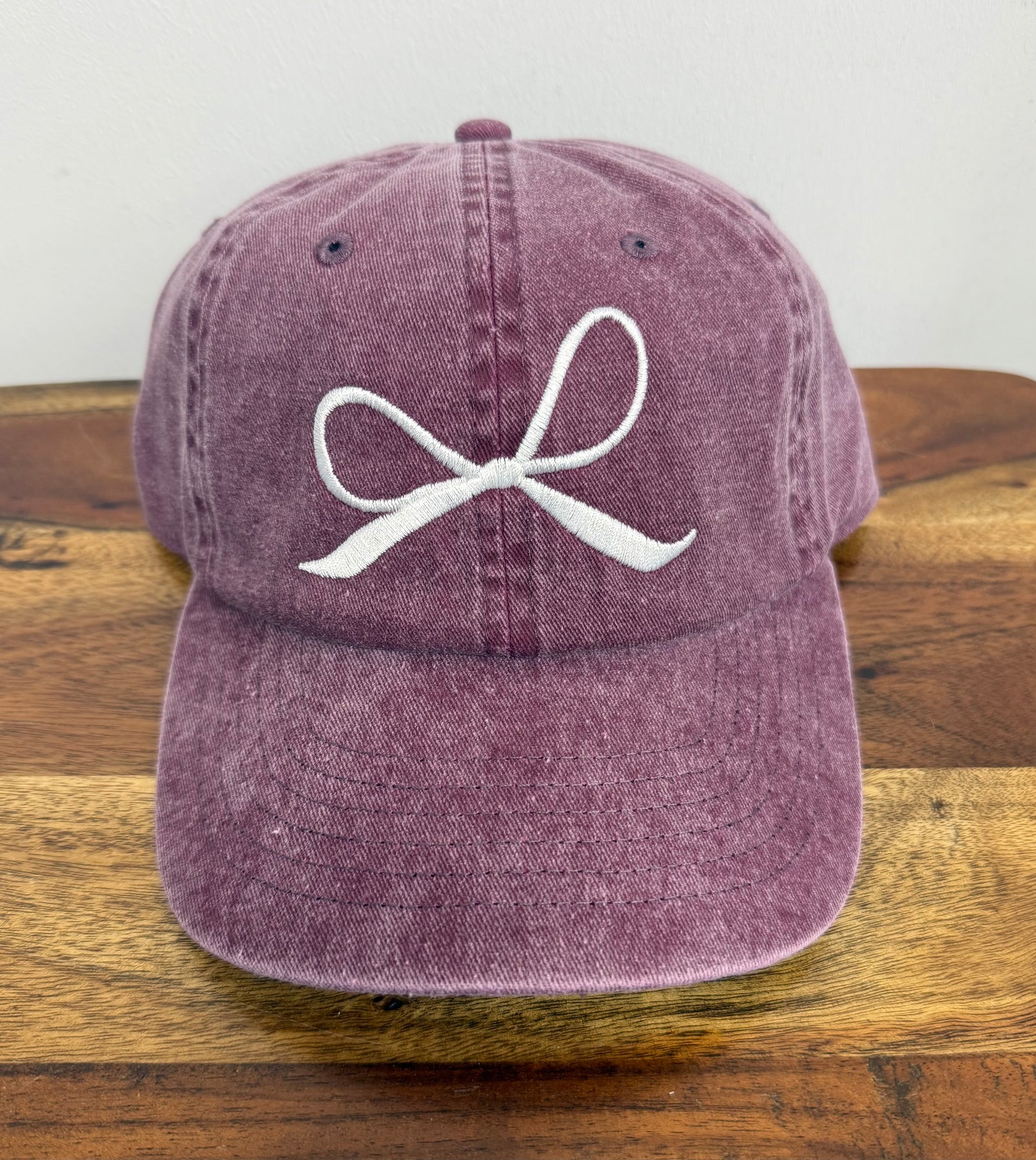 • Maroon cap with with embroidered bow