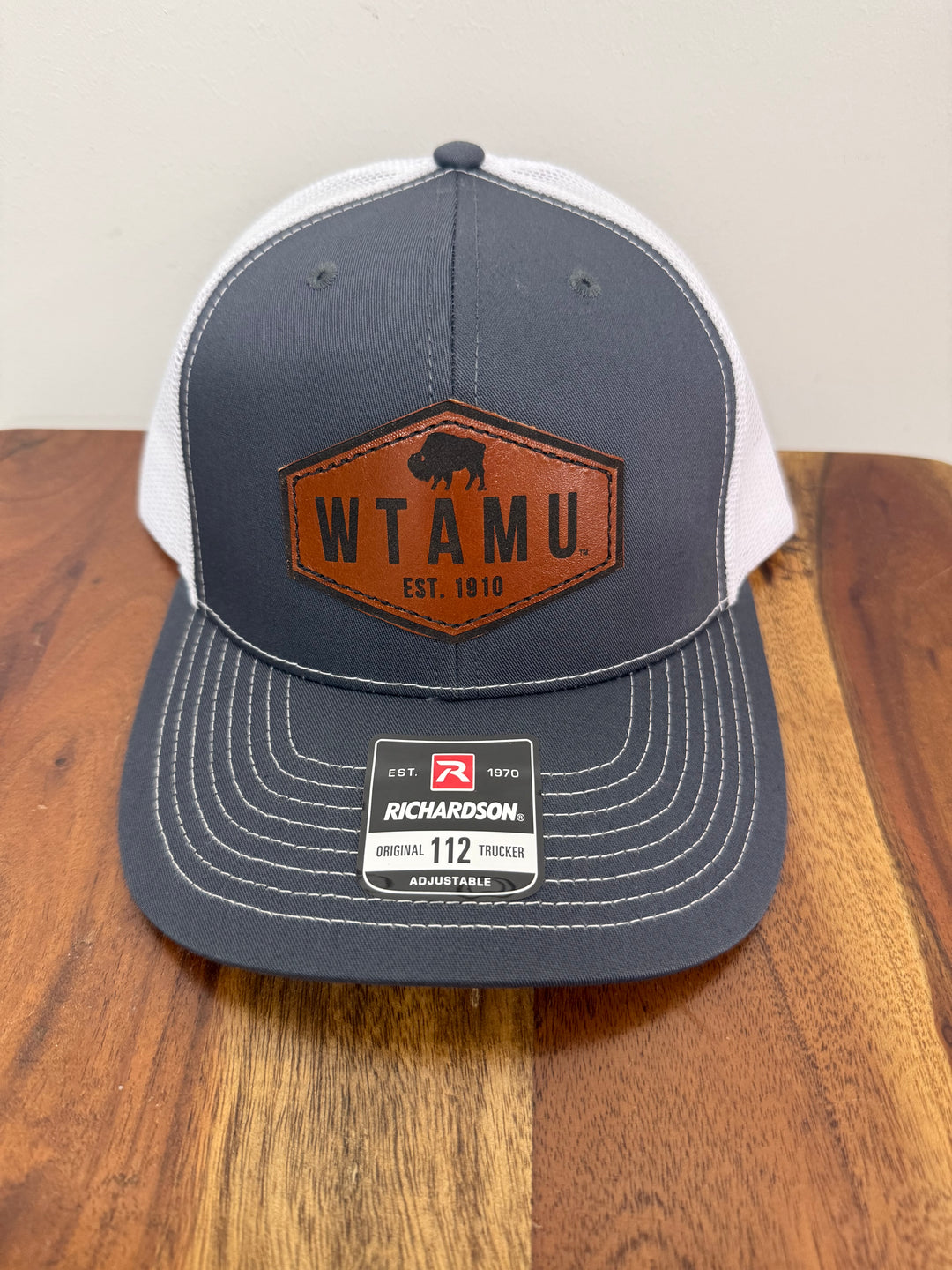 WTAMU Leather Patch Trucker Cap with White Mesh